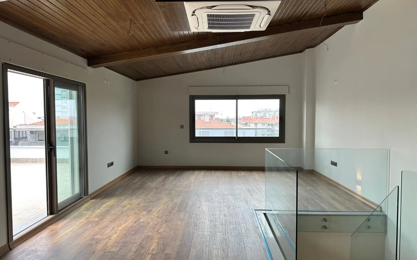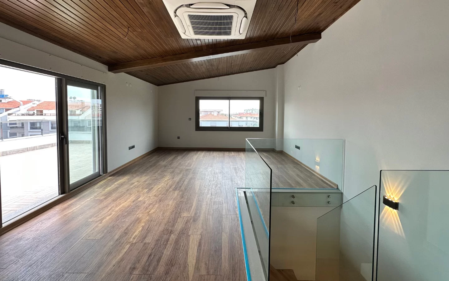 Bu dairenin sunduğu özelliklere bir göz atalım: Öncelikle, eve girer girmez sizi Açık mutfak ve salon karşılıyor. Aynı zamanda aynı katta lavabo ve geniş bir teras alanı da mevcut. Diğer katımızın girişinde geniş bir antre alanı, merdiven ve üç geniş oda bulunuyor. Odalardan birinde ebeveyn banyosu ve diğerinde iste gömme dolap mevcut. Dairede 2 adet ortak kullanım olmak üzere toplam 3 adet lavabo mevcuttur. Ayrca sizi serinleten 3 adet klima ve giyotin sistemli cam balkon bulunmaktadır. Bu balkonda keyifli zamanlar geçirebilir ve manzaranın tadını çıkarabilirsiniz.